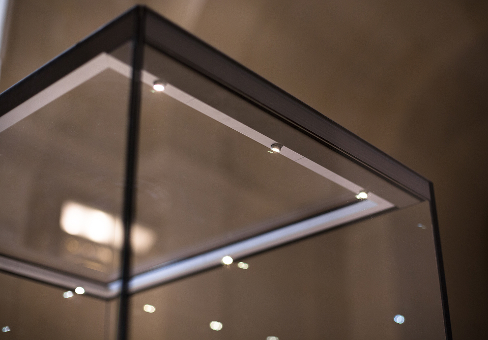 For conservation purposes, we take it as a standard to work with fiber optics and LED solutions from specialist exhibition lighting providers, always separating the technical zone of a showcase from the display area with thermal insulation. Note that we exclusively use UV protective glass, to prevent any damage from natural daylight that may enter the exhibition space.